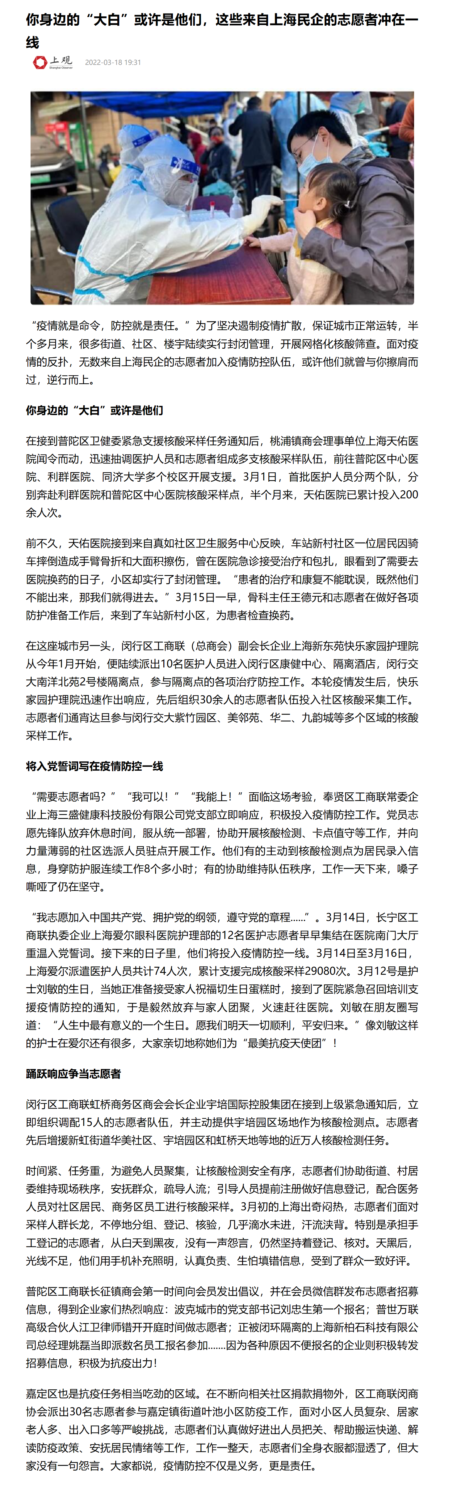 “疫情就是命令,防控就是責(zé)任。”為了堅決遏制疫情擴散,保證城市正常運轉(zhuǎn),半個多月來,很多街道、社區(qū)、樓宇陸續(xù)實行封閉管理,開展網(wǎng)格化核酸篩查。面對疫情的反撲,無數(shù)來自上海民企的志愿者加入疫情防控隊伍,或許他們就曾與你擦肩而過,逆行而上。