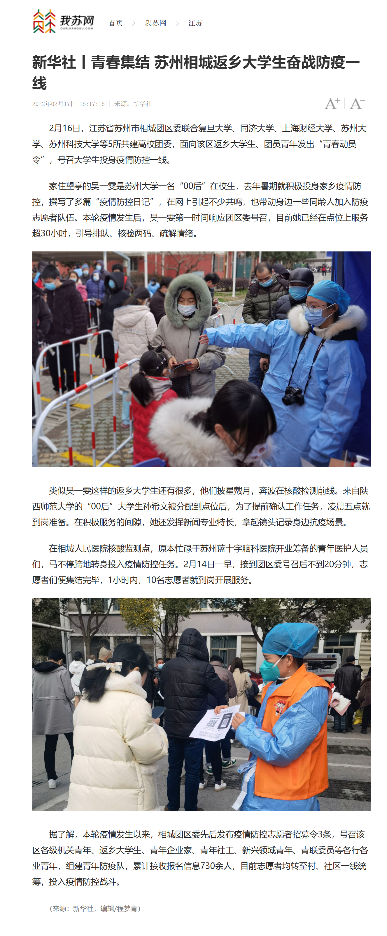 新華社江蘇分社:青春集結(jié) 蘇州相城返鄉(xiāng)大學(xué)生奮戰(zhàn)防疫一線