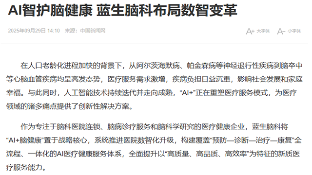 中新網:AI智護腦健康 藍生腦科布局數智變革