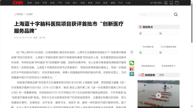 央廣網:上海藍十字腦科醫(yī)院項目獲評首批市“創(chuàng)新醫(yī)療服務品牌”
